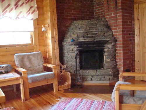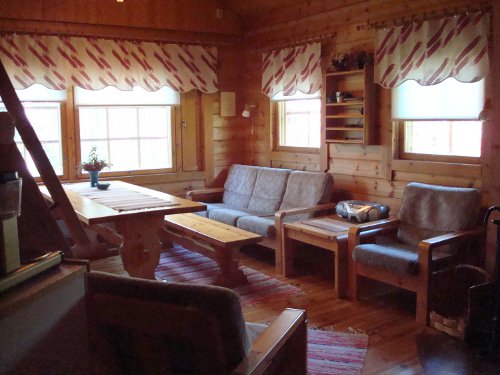 Talo B Hirsirakenne + eristys ja sisäpuolella hirsipaneeli Pinta-ala 58,5m2 + iso makuuparvi Tupakeittiö, 2 makuuhuonetta, sauna, pesuhuone, WC ja kuivaushuone Jääkaappi, sähköliesi, astianpesukone ja runsas keittiöastiasto Radio ja TV sekä takka